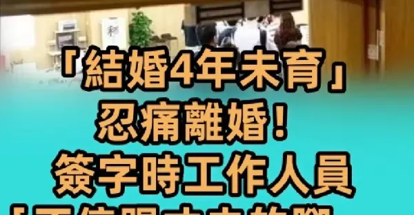 「結婚4年未育」忍痛離婚!簽字時工作人員「不停踢丈夫的腳」 丈夫轉頭看一眼妻子:不離了