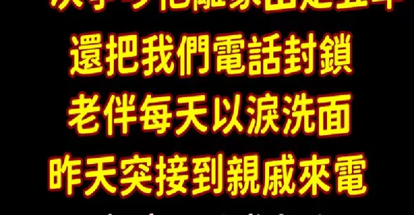 兒子一直是全家驕傲,一次爭吵他離家出走五年,還把我們電話封鎖,老伴每天以淚洗面,昨天突接到親戚來電…「聽到一個消息」嚇到雙腿癱軟...