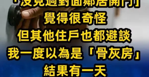搬來整整一年「沒見過對面鄰居開門」,覺得很奇怪但其他住戶也都避談,我一度以為是「骨灰房」!結果有一天「門突然打開了」… # 老公原本要我別插手
