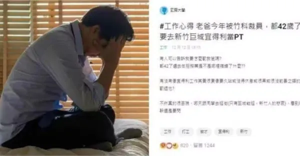 「我爸今年被竹科裁員,說要去巨城打工,都42歲了去做服務業?真的很丟臉,哪天跟同學逛街遇到,都不知道要躲還是閃…」
