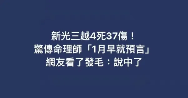 新光三越4死37傷!命理師「1月早就預言」...網友看了發毛:說中了