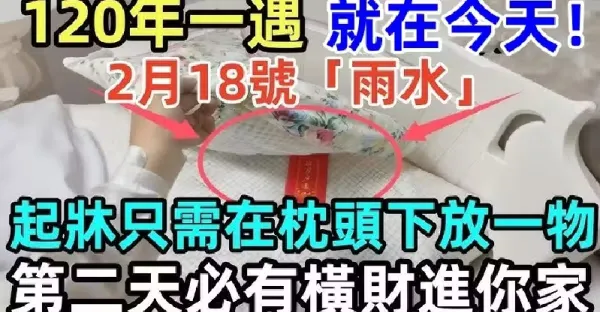 120年一遇,就在今天!2月18號「雨水」,起床後只需在枕頭下放一物,第二天必有橫財進你家!